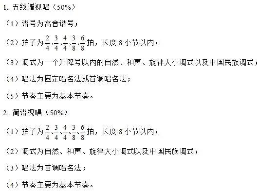 1. 音乐学专业考生自选曲目1首,音乐表演专业考生自选曲目2首(通俗演唱现场抽唱1首),作品内容积极健康;