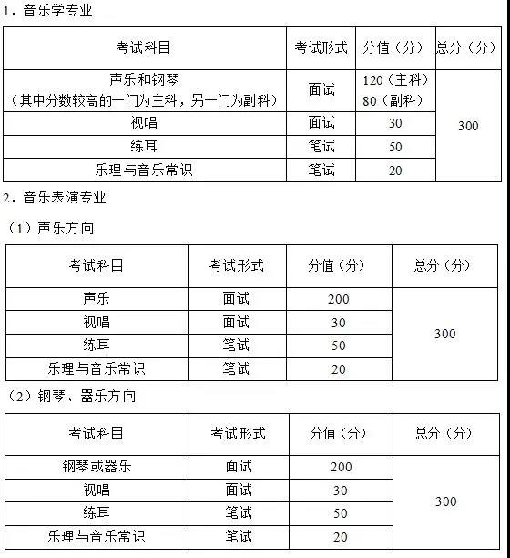 1. 音乐学专业考生自选曲目1首(乐曲或练习曲),音乐表演专业考生自选曲目2首(乐曲和练习曲各1首);