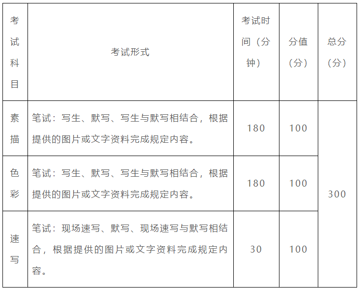 3.考查考生是否具备学习本专业的艺术修养和发展潜质。