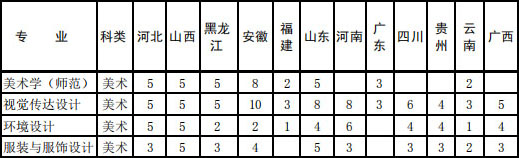南通大学2020年美术类本科招生专业含美术学师范、环境设计、视觉传达设计、服装与服饰设计,面向江苏、河北、山西、黑龙江、安徽、福建、山东、河南、广东、四川、贵州、云南、广西等省份招生。不组织校考,采用上述各省美术统考成绩。